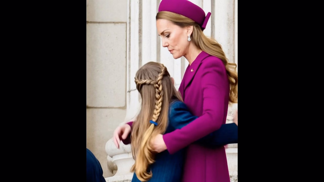 The Princess of Wales was also photographed reaching out to readjust Charlotte’s hair, which she wore with her favored long braid.